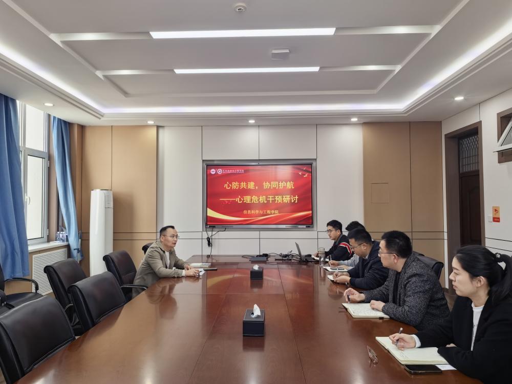 为深入推进学生心理健康教育工作,提升辅导员心理危机干预专业能力,3月27日下午,信息科学与工程学院特邀学校心理健康服务中心赵延庆老师,在学院301会议室开展心理危机干预专题研讨,全体辅导员参会。