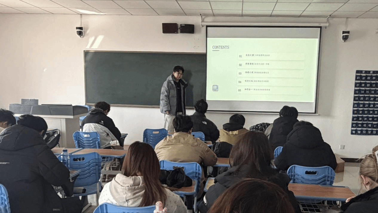 分享会伊始,主讲人李家伟直击当代大学生“职场沟通怯场、形象管理迷茫、礼仪细节疏漏”的核心痛点,以职场沟通理论与职业形象规范为基础,拆解“职场礼仪=刻板束缚”的认知误区,重点阐释礼仪对职业信任建立、情绪调节与职场竞争力提升的积极意义。他还分享了《高效职场沟通》《职业形象管理指南》等优质职场读物与正念表达资源,强调“职场礼仪是自我展示的珍贵契机,而非被动的约束”,高效解决同学们“怕沟通、不会表达、不懂形象管理”的职场困惑。