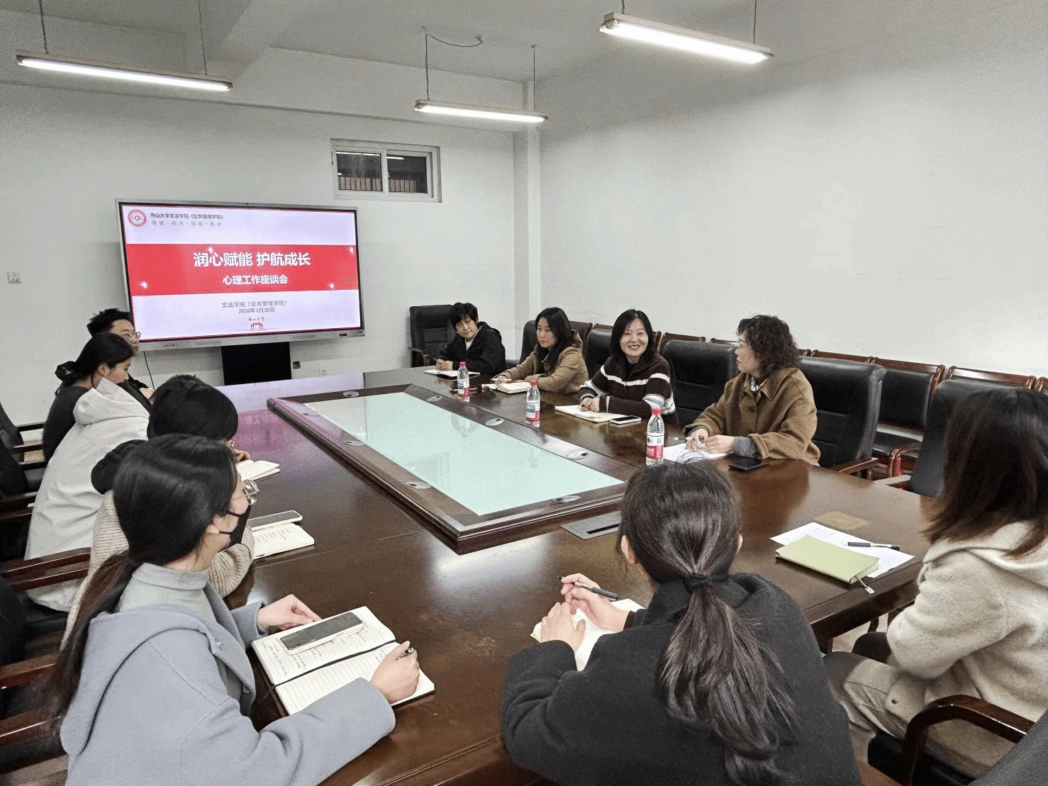 本次心理座谈会为辅导员搭建了经验交流的专业平台,有效提升了辅导员对心理工作的觉察敏锐性和研判能力。下一步,文法学院(公共管理学院)将以此次会议为契机,持续健全心理预警与干预体系,细化帮扶举措,常态化开展心理研判与关爱工作,以暖心服务润心育人、专业指导赋能成长,全力为学生营造安全温暖的成长环境,守护学生身心健康。
