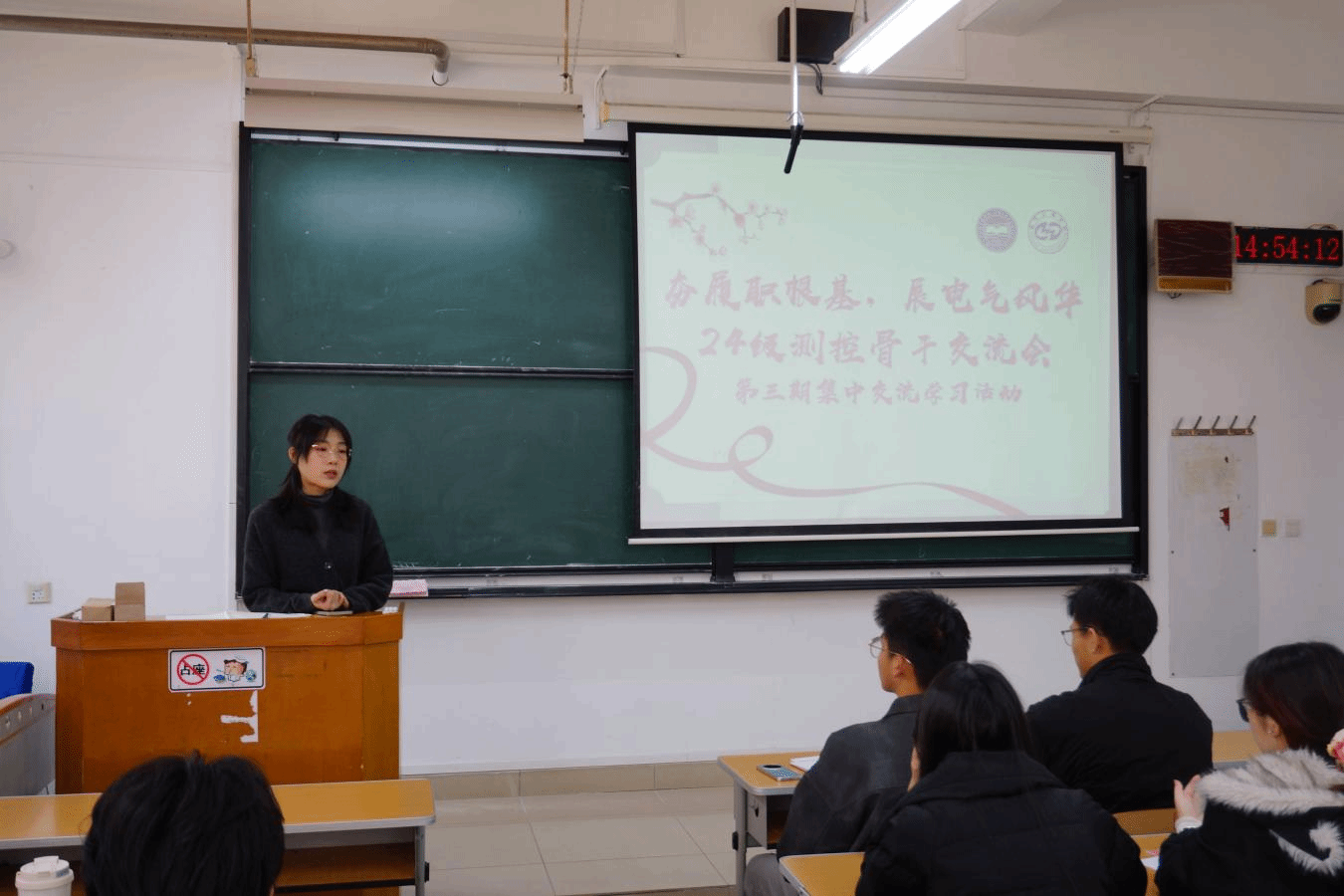 徐小焱老师对各项工作分享作针对性点评指导,对各班班委的工作成效给予肯定。她强调,班委是连接师生的核心纽带,要始终秉持服务同学的初心,主动担当作为,精准对接同学需求,扎实做好各项班级工作;要持续提升履职能力,在工作中总结经验、补齐短板,以高度的责任心推动优良班风学风建设,助力全体同学共同成长。