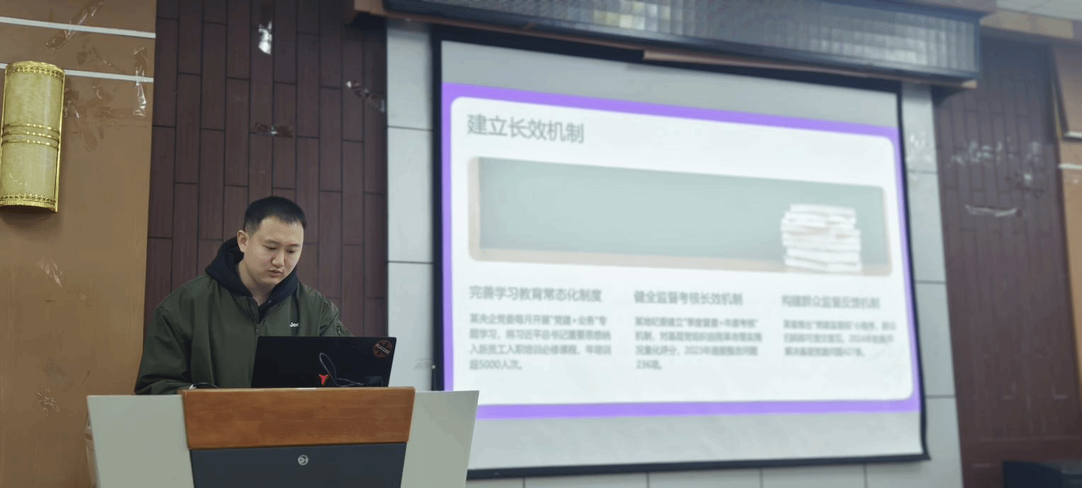 王杰同志以“学习贯彻习近平总书记关于党的建设的重要思想”为主题,围绕《习近平总书记关于党的建设的重要思想概论》进行阐释,主要包括习近平总书记关于党的建设的重要思想的核心要义、精神实质、丰富内涵和实践要求,号召全体党员更加深刻领悟“两个确立”的决定性意义,增强“四个意识”、坚定“四个自信”、做到“两个维护”,自觉在思想上政治上行动上同以习近平同志为核心的党中央保持高度一致,为以中国式现代化全面推进强国建设、民族复兴伟业贡献全部力量。