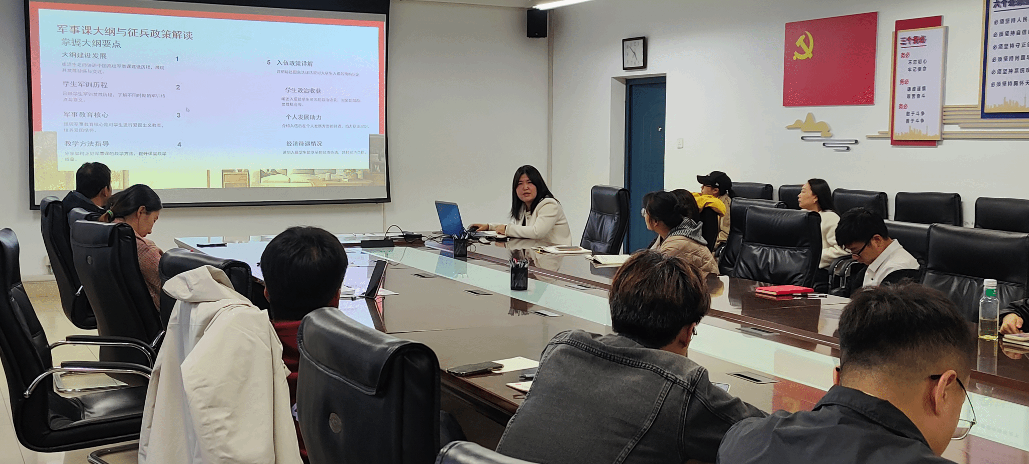 10月16日下午,我校军事教研部2025年秋季学期第一次教学培训会在世纪楼302会议室召开。电气学院杨雯老师分享了参加2025年河北省普通高等学校军事教师培训的心得体会,军事教研部王楠老师回顾了参加河北省第九届高校军事教师授课竞赛的参赛经历和教学启示。